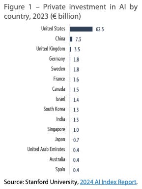 Europe is unfortunately a distant third, Mistral is indeed a good lab and there is lots of talent coming out of Stockholm, Paris and London, however the capital markets are no where near as deep as the US and balk quite easily at the huge capital expenditures required to support this industry. On top of that you have large energy costs due to net zero aspirations coupled with a lack of Russian gas due to the Ukraine war. As if that wasn’t enough, Europe wasted no time getting to work on the AI Act, another technology regulation on the heels of the Digital Services Act and the General Data Protection Regulation, all of which chills investment in the sector, especially when the US is more than open for business. One thing is for sure, Europe won’t be growing its way out of its own debt crisis using AI growth.