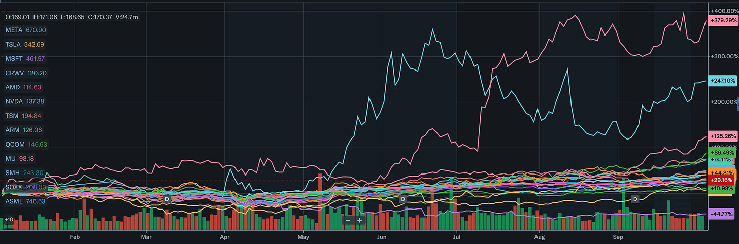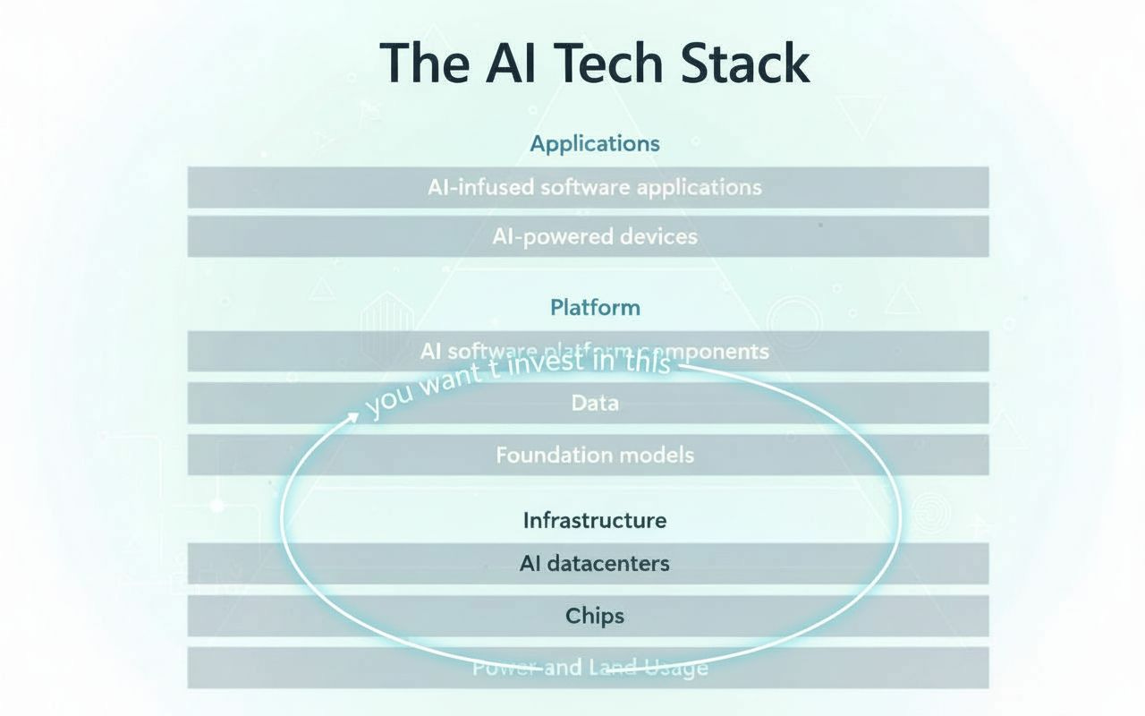 The public markets have indeed seen the potential for AI as a major economic driver and are reacting accordingly. As you go further down the AI stack, you are able to derive more value from your investment due to the direction that capitol will flow through this value chain, and the lower you go the more fungible the good (for example energy can do much more than power chips). In this way you can walk down the supply chain and size your positions accordingly, with the biggest positions at the bottom and the smallest positions at the top.